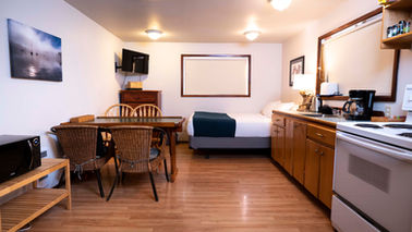 The Boatshop Suite is a an open concept, self contained suite. Boatshop has a set of bunk beds, a queen bed, a full kitchen and a small covered BBQ deck. Smaller than the cabins but fully equipped for cooking, meals can be self cooked here. Alternatively, enjoy the hearty meal service at the main lodge.