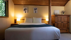 Creekside Cabin is located on the waterfront, steps away from the dock. There are 3 rooms, 5 beds, two bathrooms, a fully equipped kitchen and harbor view barbeque deck.